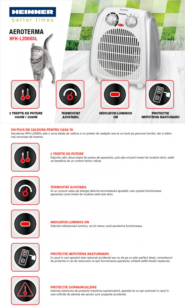 Aeroterma Heinner, 2000 W, 2 trepte putere, termostat