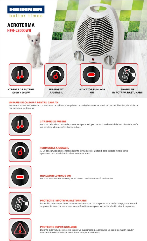- Putere aeroterma, radiator: 1000/2000W