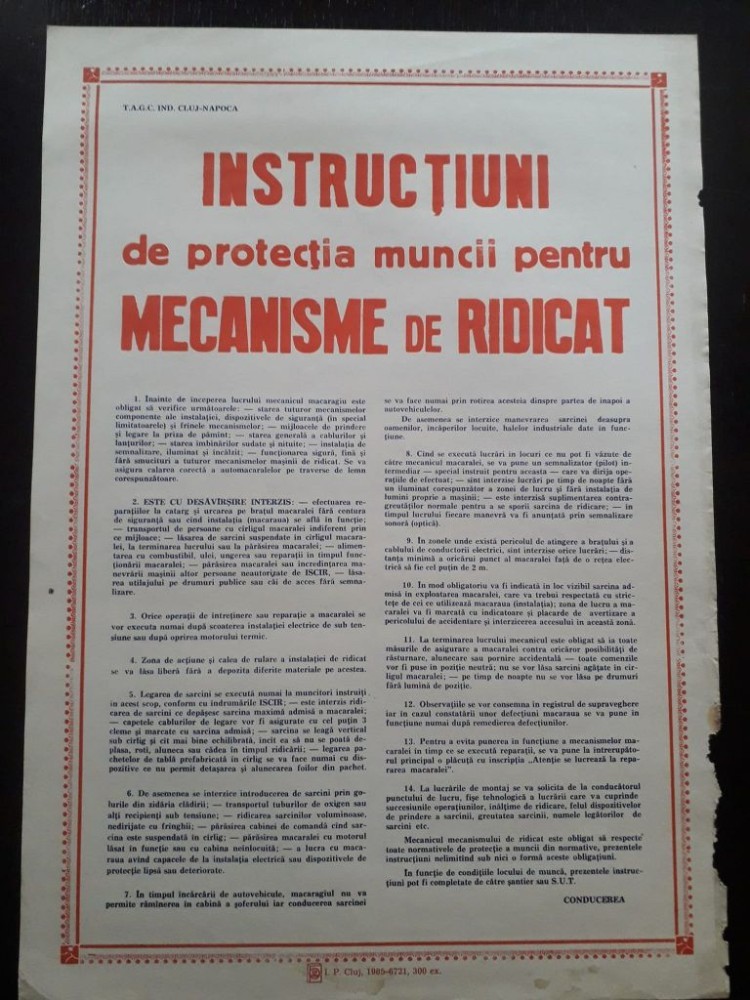 AF30 Afiș protecția muncii, România comunistă