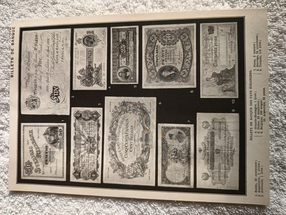 afis .Plansa color bilete de banca , bancnote diverse tari ale lumii