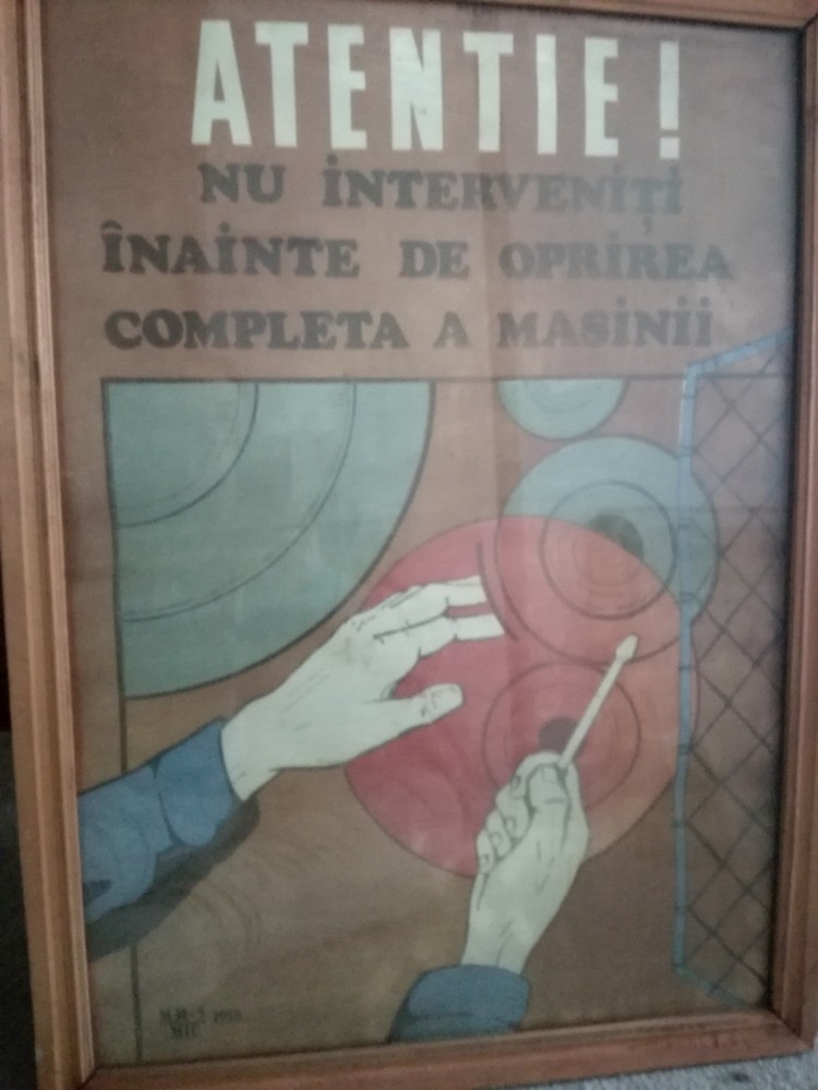 Afis romanesc comunism "Nu interveniti inainte de oprirea completa a masinii"
