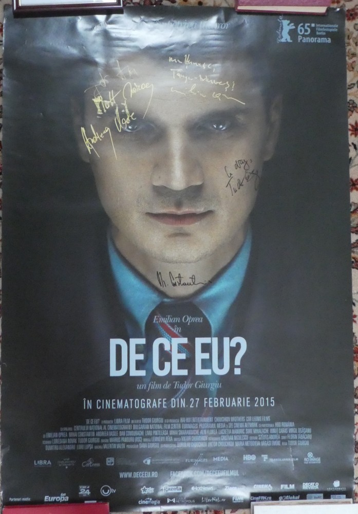 Afisul filmului De ce eu ? de Tudor Giurgiu,autografele actorilor si regizorului