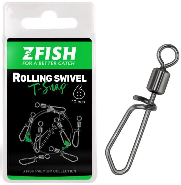 Agrafa Cu Vartej Zfish Rolling Swivel With T Snap, 43kg, Nr.6, 10buc/plic