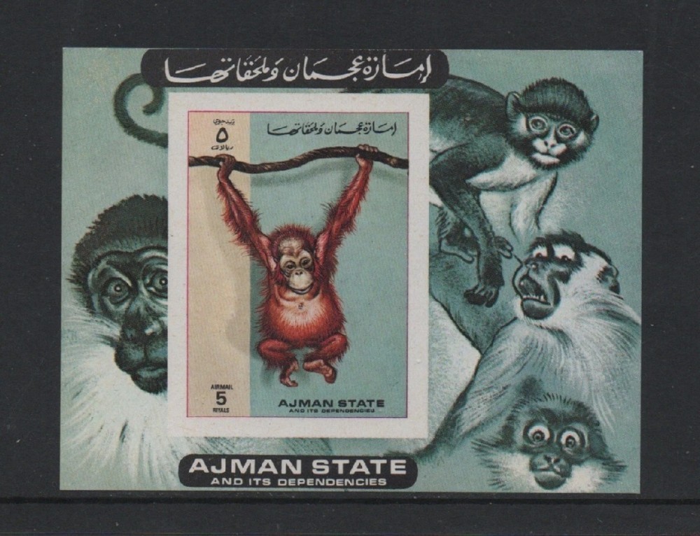 Ajman 1972 - Fauna, animale, maimuțe, colita nedantelata neuzata