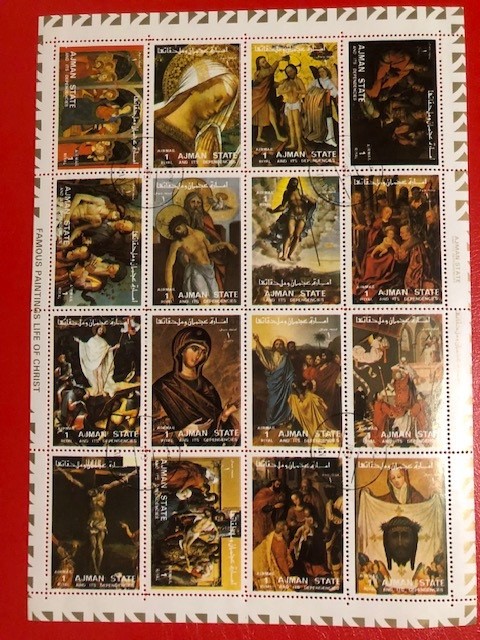 AJMAN, ARTĂ - BLOC ȘTAMPILAT