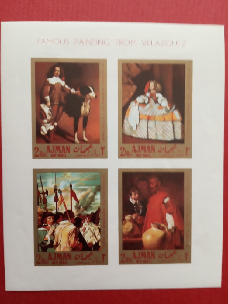 AJMAN, VELAZQUEZ - BLOC IMPERF. CU URME DE ȘARNIERĂ