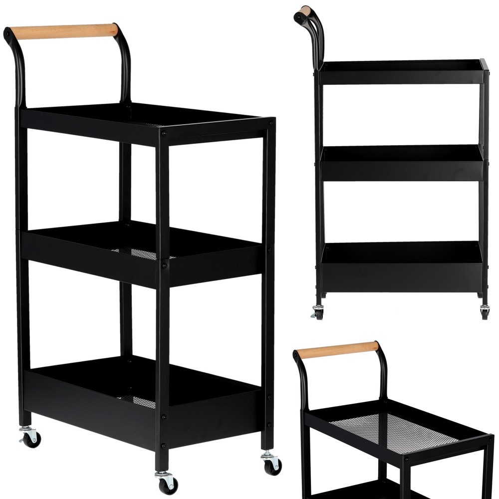Ajutorul pe roți este o soluție practică și funcțională, realizată în întregime din oțel și lemn de înaltă calitate. Această construcție este rezistentă și solidă, asigurând o utilizare îndelungată. Raftul plasat pe roți rotative (360°) permite mutarea ușoară a acestuia în încăpere.