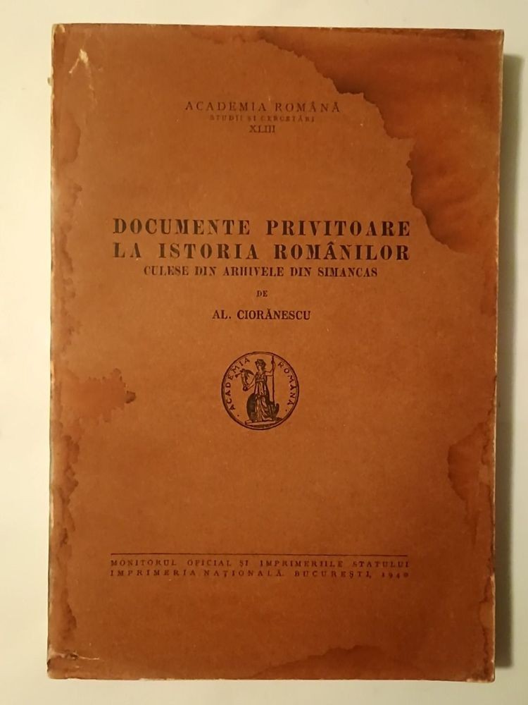 Al. Ciorănescu - Documente privitoare la istoria românilor culese din arhivele din Simancas (1940) (vezi descriere!)