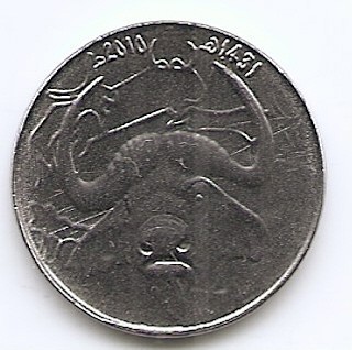 Algeria 1 Dinar 2010 - 20.6 mm, V18, KM-129 UNC !!!