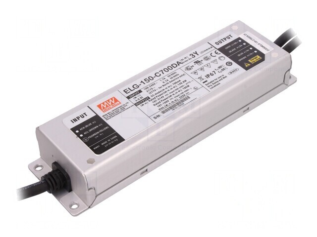 Alimentator LED 149,8W 700mA DALI MEAN WELL ELG-150-C700DA-3Y este soluția ideală pentru iluminatul LED profesional, oferind performanță ridicată și fiabilitate în orice condiții de lucru.