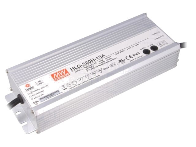 Alimentator LED MEAN WELL HLG-320H-15A 285W 15V 19A IP65 Pulsatoriu