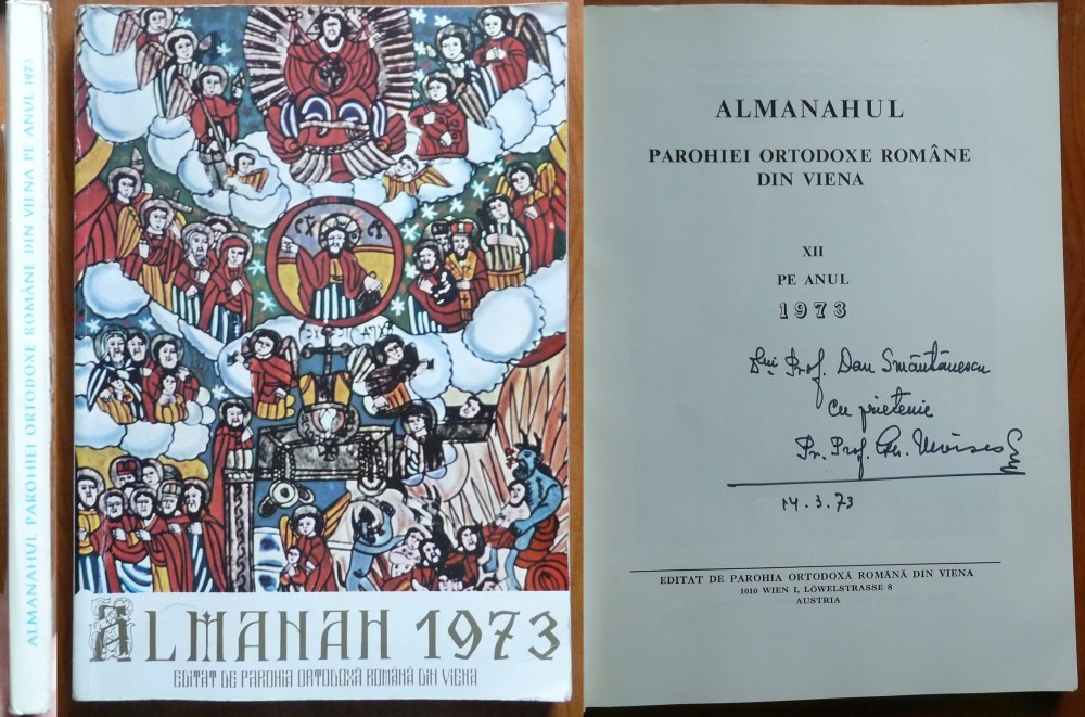 Almanahul Parohiei Romane Ortodoxe din Viena , 1973 , cu autograful parohului