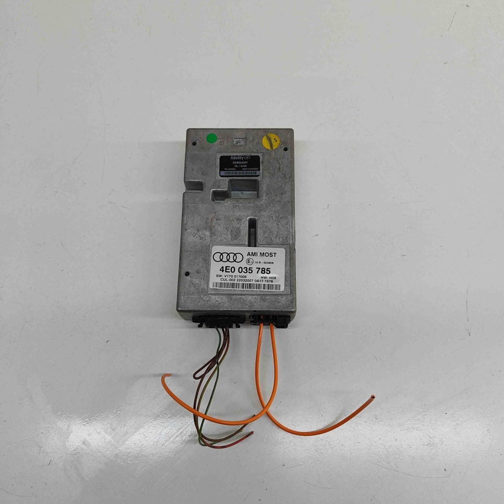 Alt modul de control AUDI Q7 4L . OEM: 4E0035785 . Aceasta este o piesă originală de la producător, asigurând calitatea și compatibilitatea cu vehiculul dumneavoastră. . Expediem în siguranță din depozitele noastre din Europa Centrală și de Nord, folosind soluții logistice de încredere. Suntem cel mai mare depozit de piese auto din dezmembrări din Europa de Nord, oferind o gamă largă de piese second-hand precum motoare, baterii pentru vehicule electrice, cutii de viteze etc. Gama noastră include piese pentru BMW, Mercedes-Benz, Audi, VW, Seat, Toyota, Lexus, Tesla, Nissan, Peugeot, Citroen, Renault, Land Rover, Jaguar și alte mărci auto. Oferim garanție pentru piese originale și politică de retur. Când ne sunați, vă explicăm condițiile de garanție pentru fiecare caz în parte și organizăm livrarea folosind logistică modernă. Piesele uzate sunt acoperite de garanție.