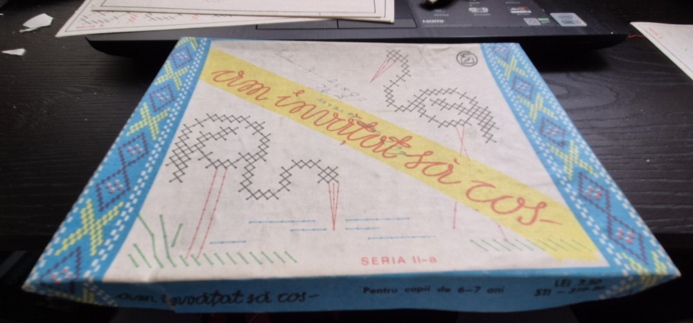 Dupa cum se vede si in poze, jocul nu este complet. Din 8 planse, 6 sunt necusute, una lipseste iar una este cusuta. Lipsesc si mosoarele cu ata.