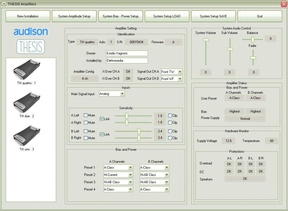 Amplificatoarele Audison Thesis TH sunt fabricate folosind tehnologia analogica si digitala de ultima generatie. Clasa de amplificare A, intrarile analogice si digitale multi-standard si controlul amplificatorului printr-un microprocesor fac acest produs cel mai evoluat din gama Audison. TH quattro este un amplificator multi-canal complet configurabil de catre microprocesor. Configuratia cu 4 canale permite utilizarea universala a acestui amplificator pentru calitate si functionalitate fara limita.