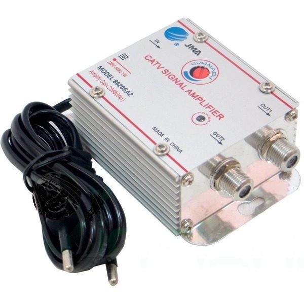 Amplificator de semnal TV cu 2 iesiri JMA,semnal CATV poate fii folosit cu succes acasa la dumneavoastra, in hoteluri, magazine sau oriunde sunt mai multe televizoare reducand erorile teletext-ului si marind viteza de transmisie a semnalului.