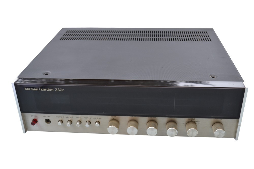 Amplificator Harman Kardon model 330 C : 4 intrari, 4 iesiri, impedanta 8-16 ohmi, 180 W consum din retea, siguranta pe fiecare canal, radio cu scala iluminata, VUmetru tuning, reglaje bass, treble, balance, loudness, poze reale, made in Taiwan.