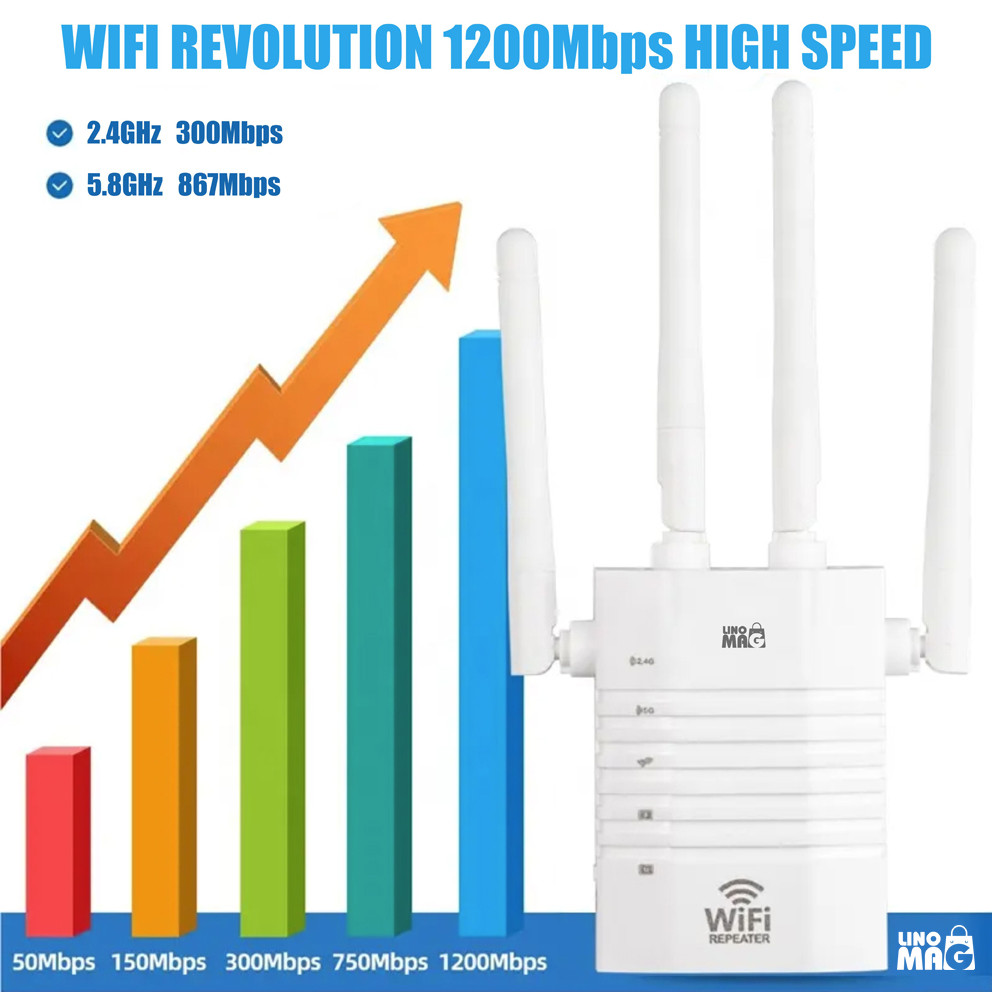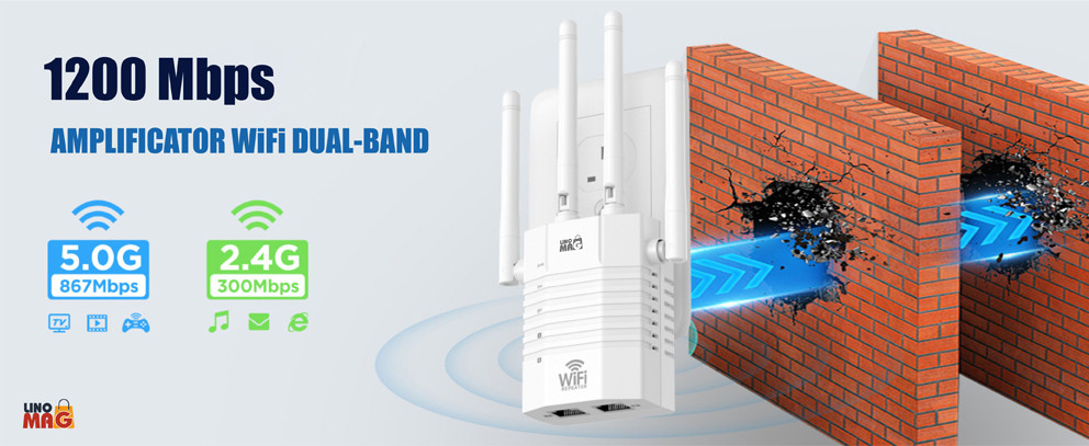 Viteza amplificatorului WiFi Linomag poate ajunge până la 1200 Mbps pentru 2.4GHz sau 5GHz, acoperind întreaga casă și grădina.