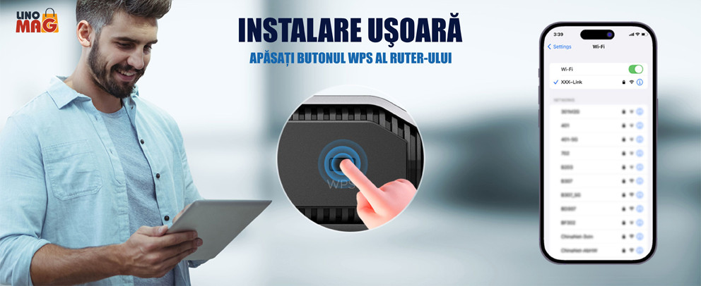 Poate extinde ușor acoperirea wireless prin apăsarea butonului WPS (amplificatorul WiFi se va conecta automat la routerul gazdă) sau pur și simplu configurându-l prin intermediul site-ului web al browserului de pe smartphone, tabletă sau laptop (durează doar 3-5 minute). Indicatorul său inteligent de semnal te poate ajuta să găsești cea mai bună locație pentru acoperirea WiFi.