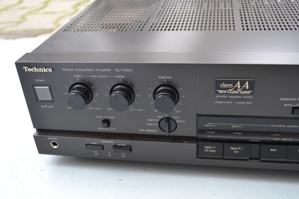 Amplificator Technics SU V 65 A : 6 intrari, 4 iesiri, 620 W consum din retea, racire freon, reglaje bass, treble, balance, Cd Direct, subsonic filter, loudness, phono selector, VC 4 amplifier, poze reale, made in Japan.