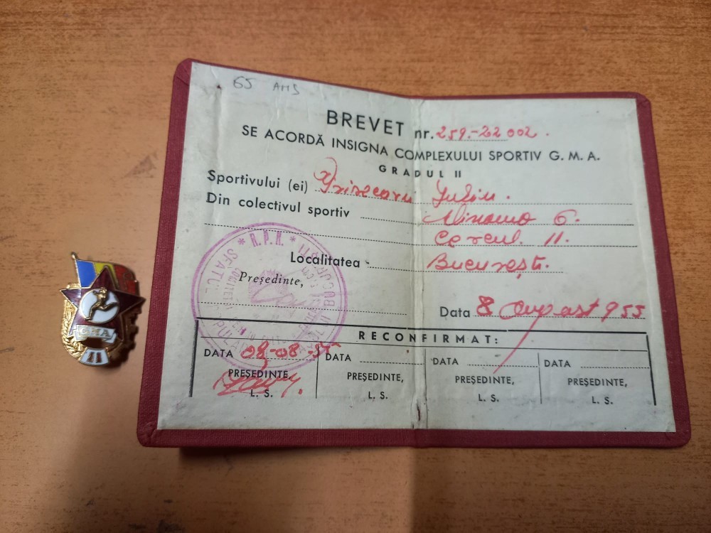 AMS @ - BREVET ȘI INSIGNĂ, COMPLEXUL SPORTIV G. M. A, 1955, RPR