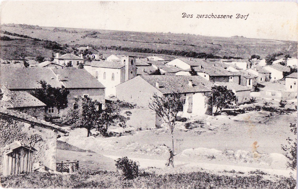 AMS* - CP DAS ZERSCHOSSENE DORF - SATUL ZDROBIT CIRCULATA 1915 stampila militara