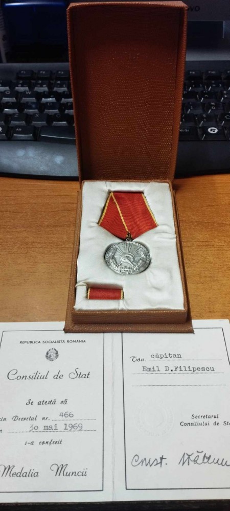 AMS % - MEDALIA MUNCII RSR cu BARETA, CUTIE, LEGITIMATIE
