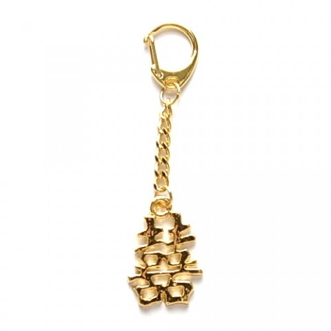Aceasta este o amuleta Feng Shui cu simbolul dubla fericire realizat din alama aurita. Simbolul dublei fericiri compus din doua carcatere chinezesti care inseamna “fericire” unite unul langa altul, este un simbol al casatoriei, fericirii conjugale. In general cele doua carcatere sunt legate intre ele cu doua linii ceea ce semnifica legatura inseparabila intre iubiti. Simbolul dublei fericiri este un talisman utilizat in Feng Shui pentru a spori dragostea si mentinerea echilibrului in relatii.