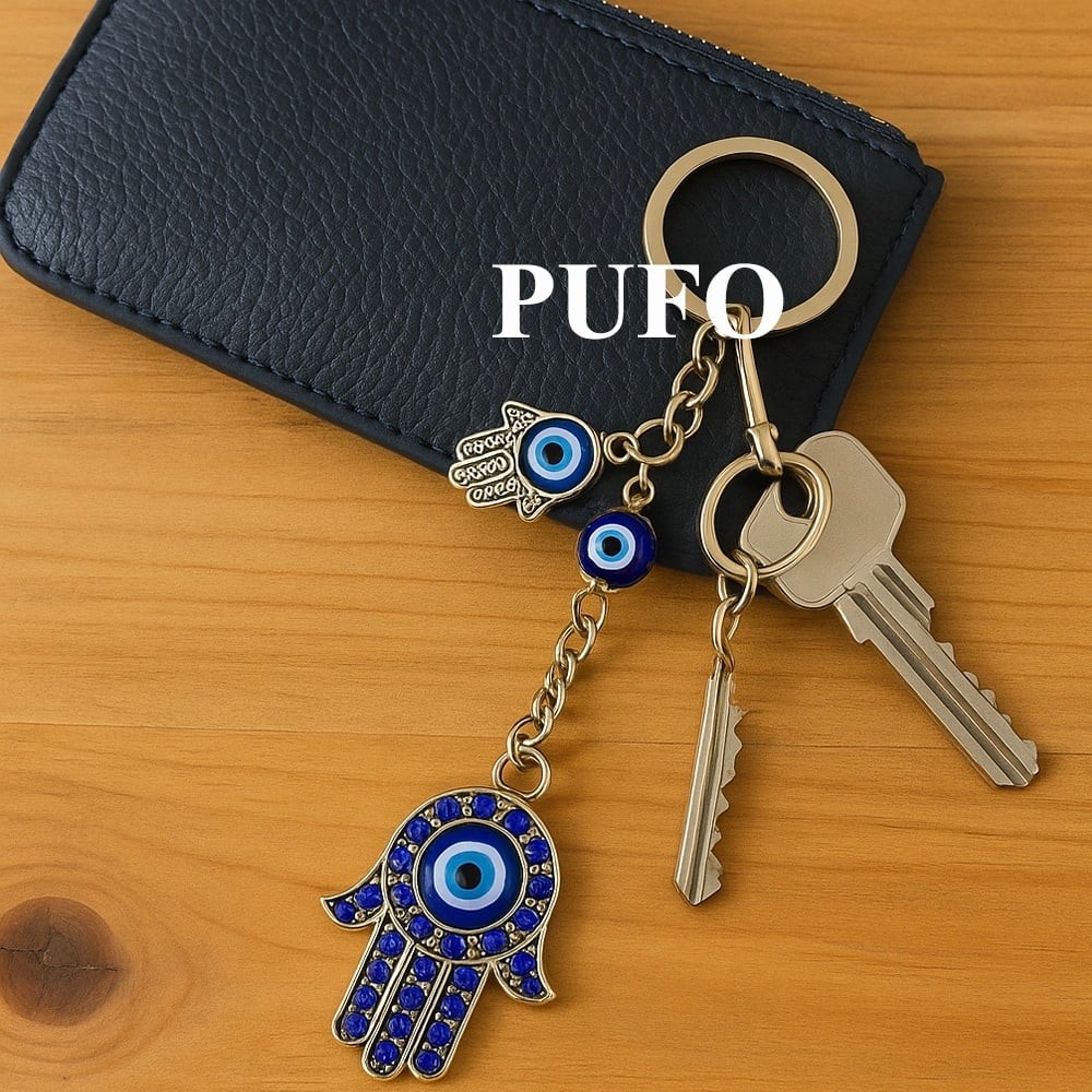 Atrage protecția divină și energia pozitivă cu amuleta Feng Shui tip breloc Pufo, un talisman dublu de putere ce combină Mâna lui Fatima (Hamsa) și Ochiul lui Horus, două dintre cele mai vechi și respectate simboluri de protecție din lume. Realizată într-o nuanță vibrantă de albastru, amuleta reprezintă echilibrul, înțelepciunea și norocul, fiind ideală pentru a respinge energiile negative și a aduce armonie în viața ta.