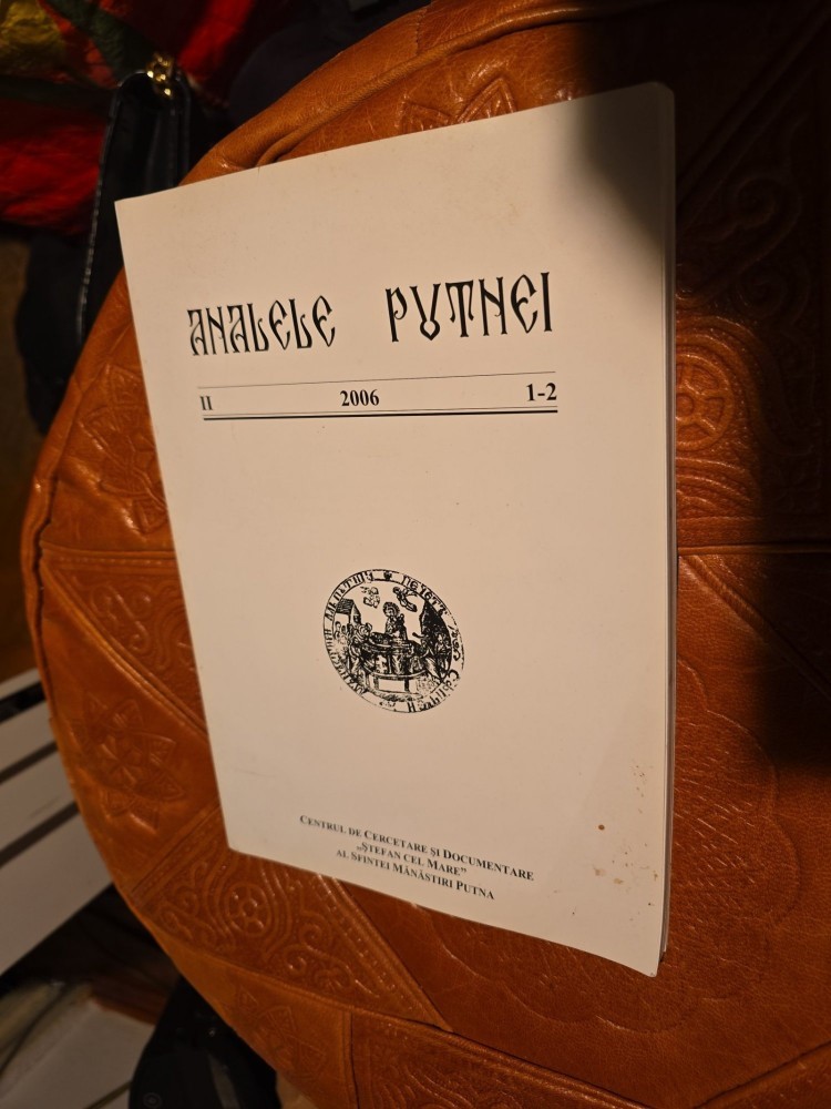 Editura: Centrul de Cercetare si Documentare "Ştefan cel Mare"Anul aparitiei: 2006Numar de pagini: Număr variabilAutor: Centrul de Cercetare şi Documentare "Ştefan cel Mare" al Sf. Mănăstiri PutnaISBN: Nu pot să extrag informații din imagine.Revista Analele Putnei publică studii, articole și lucrări de specialitate legate de istoria, cultura și patrimoniul spiritual al zonei Putnei.