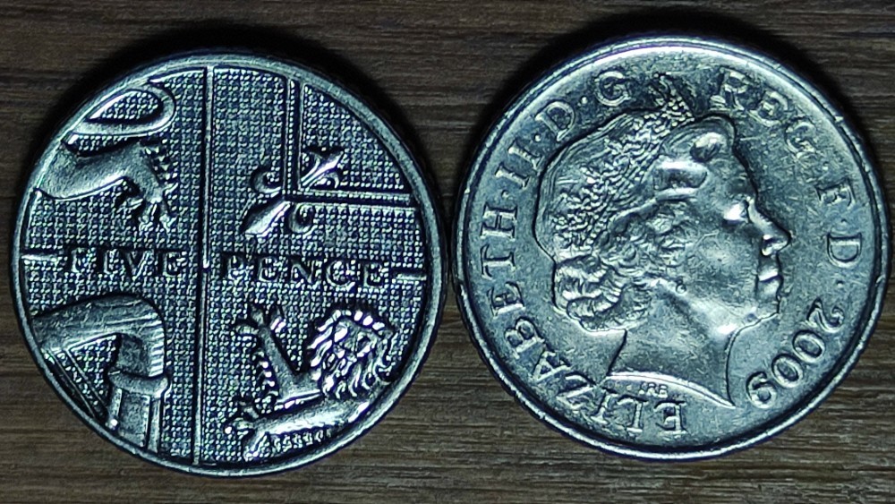 Anglia Marea Britanie set 2 x 5 pence 2009 + 2014 - Elisabeta II - varianta magnetica + nonmagnetica - impecabile !