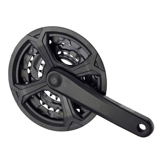 Angrenaj complet cu trei foi si aparatoare de lant inclusa, ideal pentru utilizare pe biciclete MTB, trekking sau de oras. Ofera performanta echilibrata si durabilitate ridicata.