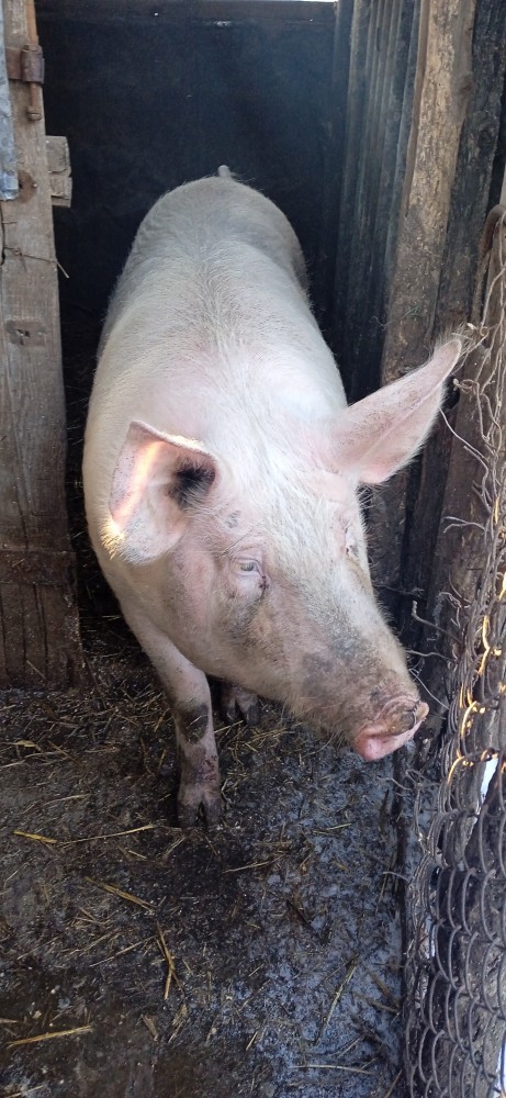 Vând porc rasă mare alb cu pitrar are 200 kg preț 13 lei. Kg