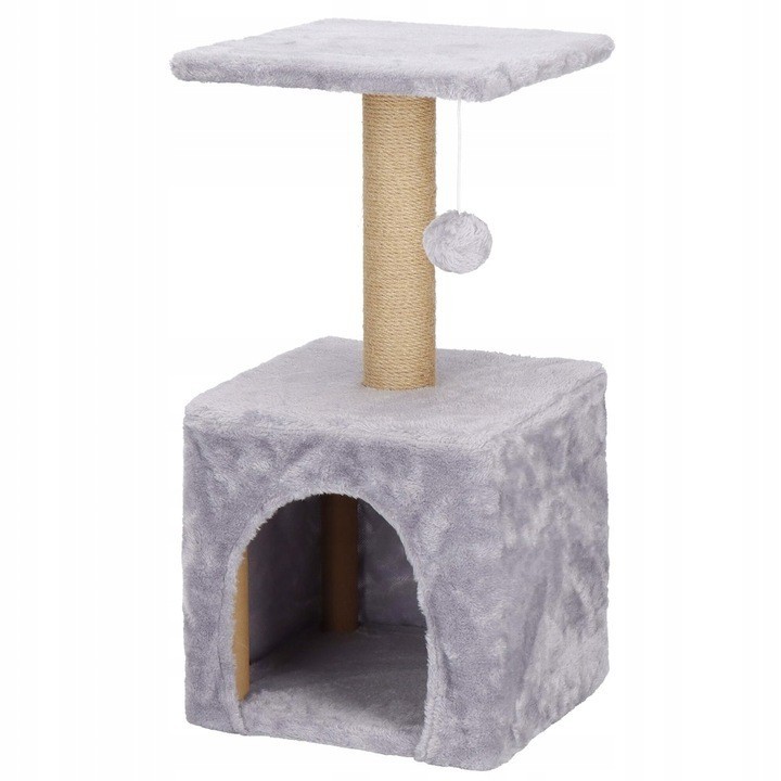 Inaltime totala: 59,0 cm Inaltimea casei: 30,0 cm Dimensiuni platforma: 30,0 cm x 30,0 cm Baza: 33,5 cm x 33,5 cm Diametrul intrarii in casa: 20,0 cm Diametrul stalpilor: 5,5 cm Inaltimea stalpului: 28,0 cm Grosime platforma: 1,5 cm Materiale: franghie sisal, plus moale, PAL Numarul de niveluri: 3 Vrei ca pisica ta sa se distreze la nesfarsit intr-un loc placut unde si relaxant? Aceasta este implinirea celor mai profunde vise atat ale proprietarilor, cat si ale animalelor lor de companie – un stalp de zgarieturi pe mai multe niveluri! Stabilitate: stalpul este proiectat pentru o stabilitate neclintita. Pisica ta poate sa se catere, sa sara si sa se zgarie fara griji. Design pe mai multe niveluri pentru joc optim: locul de joaca ofera nu doar unul, ci mai multe niveluri de explorat. Pisica ta poate urca pe varfuri si cobori in adancuri, descoperind noi perspective de joaca si relaxare. Placut la atingere: realizat dintr-un material exceptional de placut la atingere, stalpul de zgariere ofera labei pisicii sensibilitatea si confortul de care are nevoie. Durabilitate: realizat din material durabil, va rezista nu numai la zgarieturile de zi cu zi, ci si la multe luni de utilizare intensiva, asigurand durabilitate ani de zile. Distractie si bucurie: Cu o varietate de niveluri si locuri ascunse de explorat, pisica ta va gasi o multime de moduri de a petrece timp activ si distractiv. Materiale naturale, sigure pentru pisici: sfoara din jurul stalpilor este fabricata din sisal, o fibra tare si foarte durabila. Acesta este cu siguranta momentul potrivit pentru a oferi pisicii tale iubite un loc ideal de dezvoltare, joaca si odihna. Locul nostru de joaca nu este doar o piesa de mobilier, este o oaza de placere pentru animalul tau de companie. Nu mai astepta – ofera pisicii tale un cadou care ii va ridica calitatea vietii la un nivel complet nou!