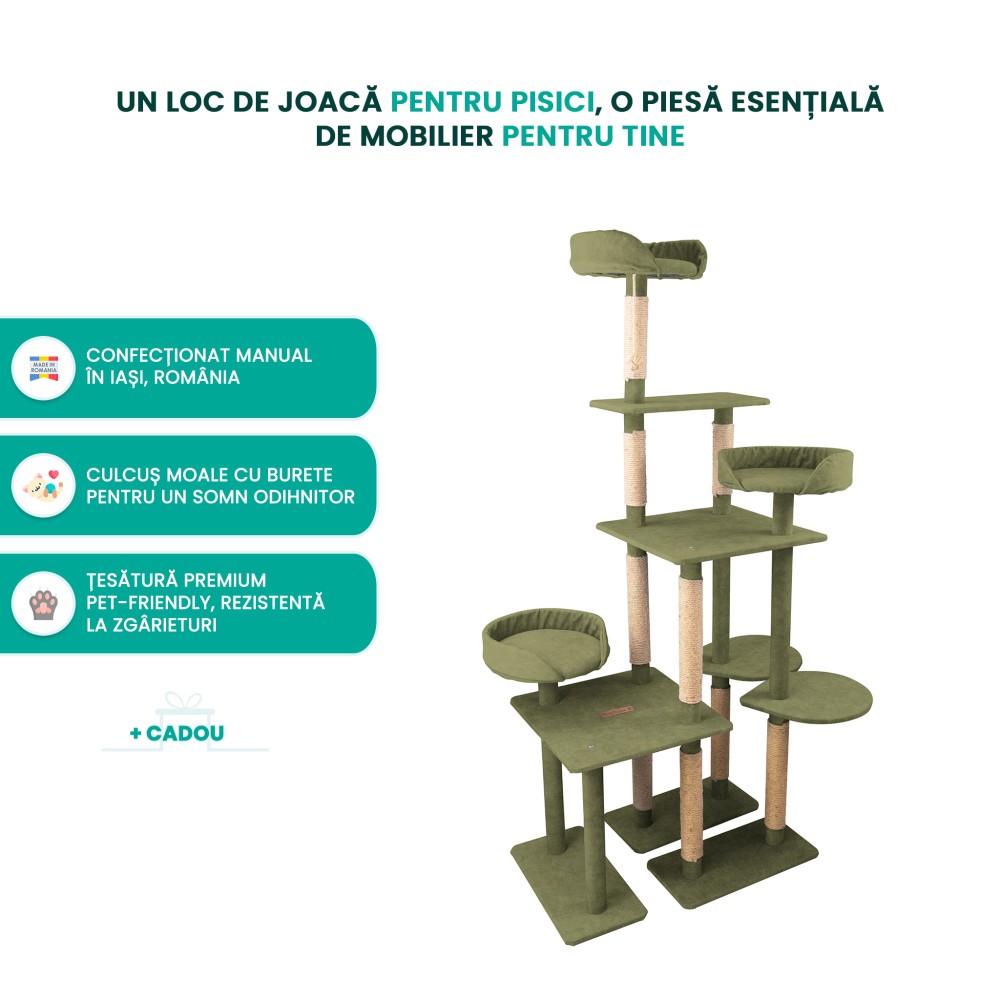 Ansamblu joaca Pisici, Verde Kiwi, 185 cm Inaltime, Lucrat Manual, 7 Niveluri