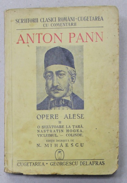 ANTON PANN - OPERE ALESE , VOLUMUL II , editie ingrijita de N . MIHAESCU , 1941