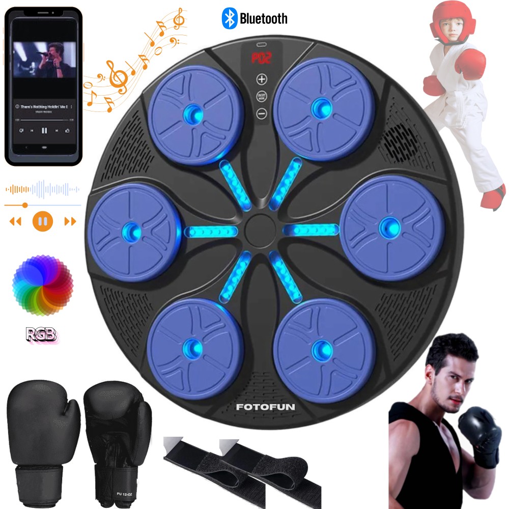 box inteligent, aparat de box, aparat box bluetooth, box cu lumini RGB, echipament box acasa, aparat box copii adulti, aparat box taekwondo, FOTOFUN® box, aparat box cu manusi, aparat box cu velcro