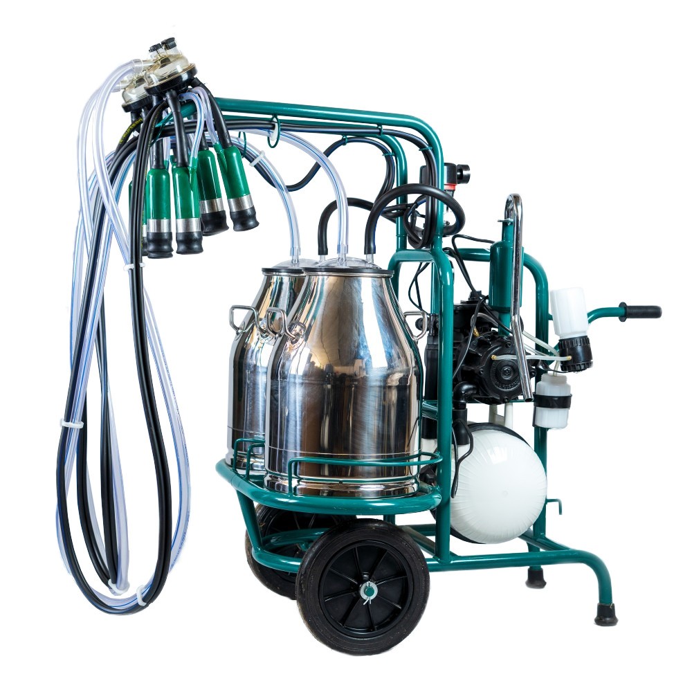 Aparatul de muls cu 2 posturi și 2 bidon inox cu