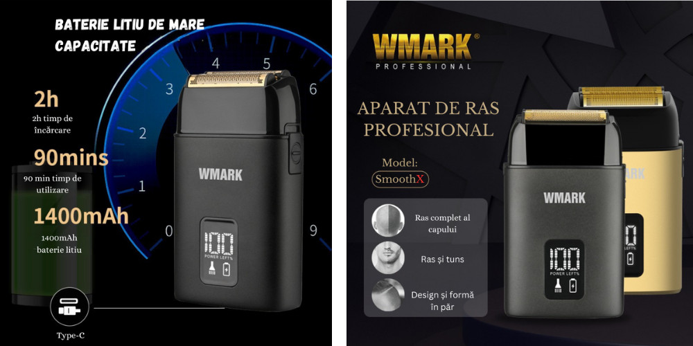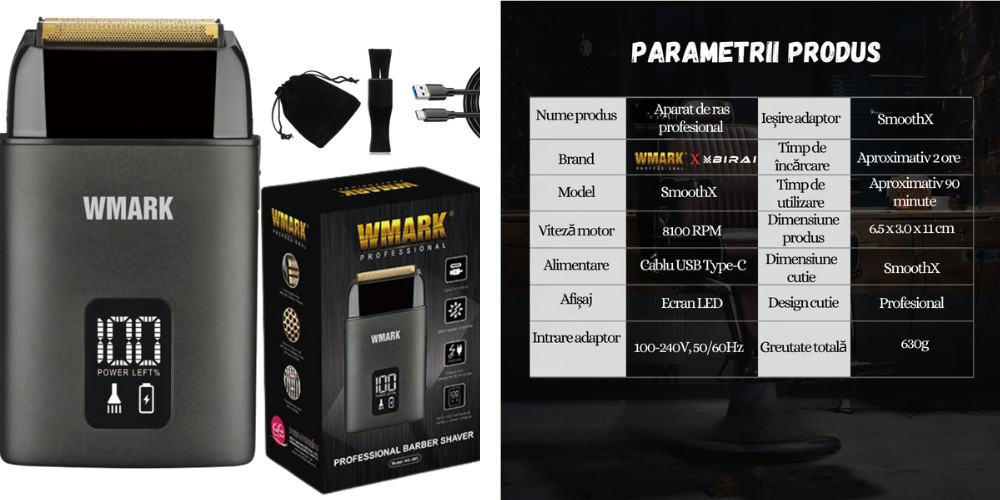 Aparat de Ras Electric Profesional BIRAI SmoothX, Shaver 8100 RPM, Fara Fir, Acumulator Reincarcabil, Rezistent la Apa, Display LCD, Afisaj LED, Stati