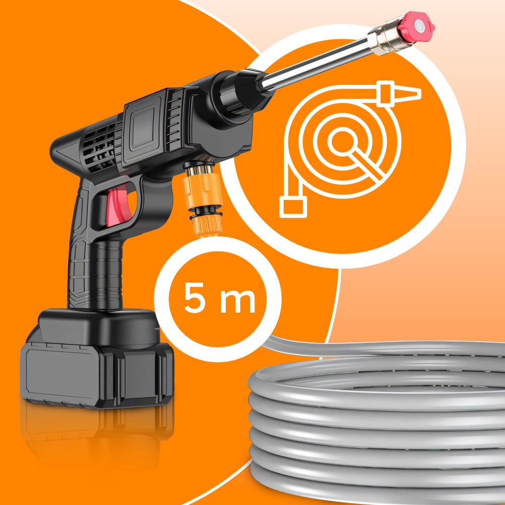 Aparatul de spalare cu presiune include un furtun de 5 metri, care ofera libertate de miscare in timpul utilizarii.