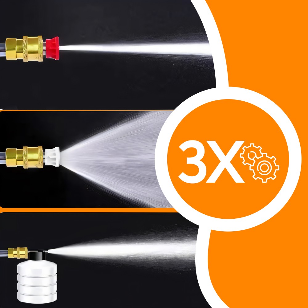 ⭐ TREI DUZE INTERSCHIMBABILE: Setul contine trei duze diferite, care permit reglarea presiunii si a tipului de jet de apa, asigurand versatilitate pentru diverse activitati, inclusiv curatarea geamurilor si a pavajului.