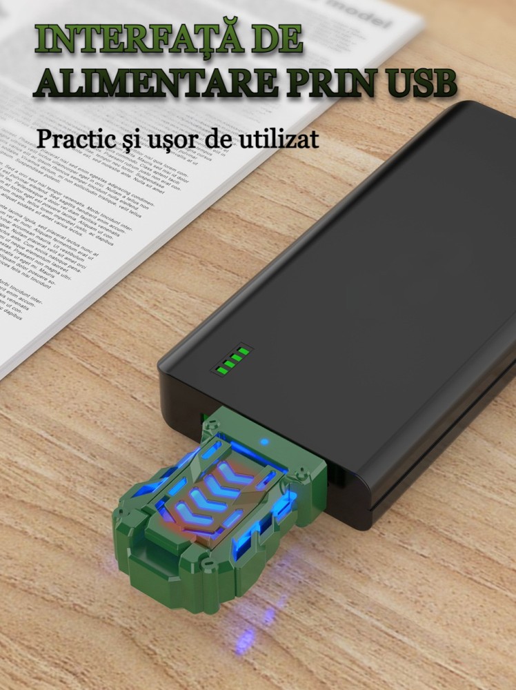 Alimentare prin USB: Prin intermediul alimentarii USB conventionale, acest dispozitiv este perfect adaptabil, fiind usor de utilizat prin conectarea la o baterie externa sau un hub USB.