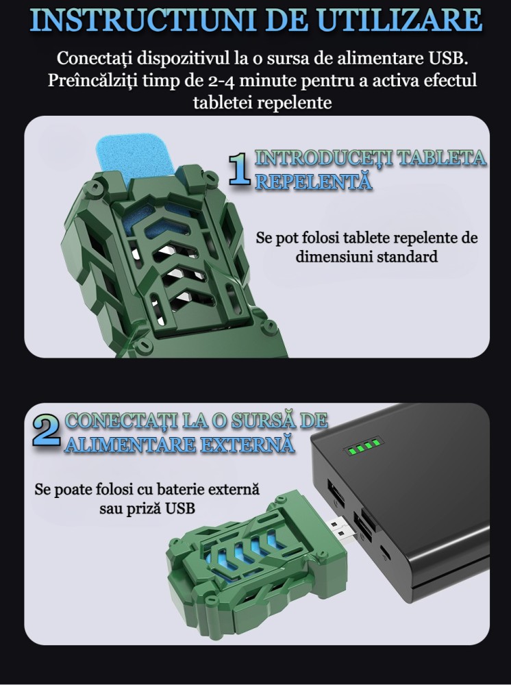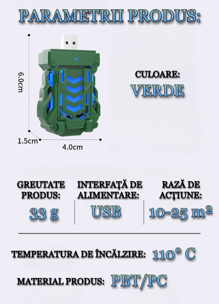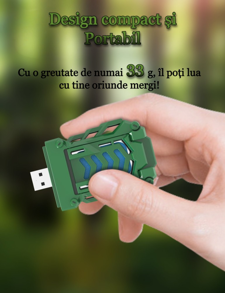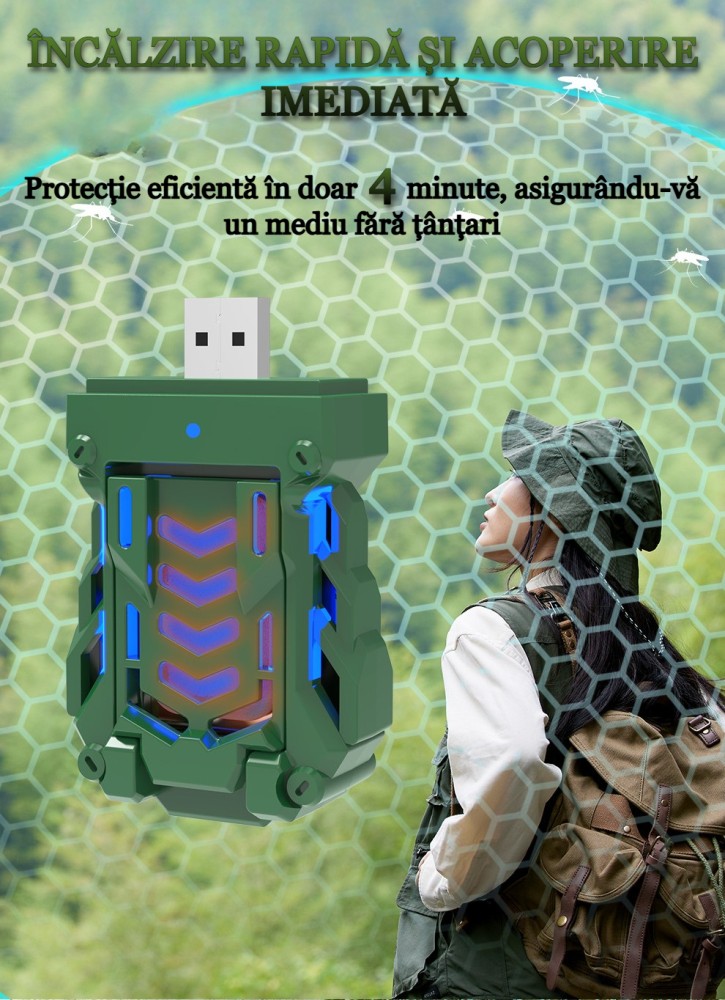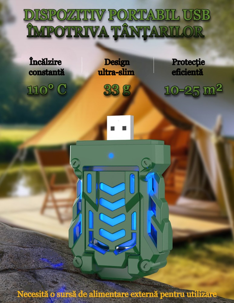 Cu un sistem de protectie dublu si posibilitate de alimentare prin USB, este o optiune sigura si convenabila pentru a crea un mediu fara tantari, atat in interior, cat si in exterior. Compact si usor, este ideal pentru activitati in aer liber, cum ar fi camping, drumetii sau pescuit.