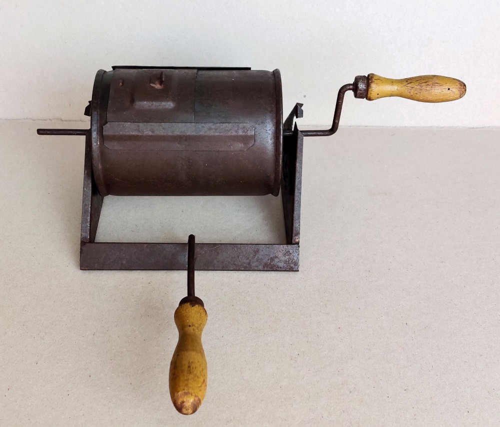 Aparat manual pentru prajit cafea sau floricele, decor industrial Epoca de Aur