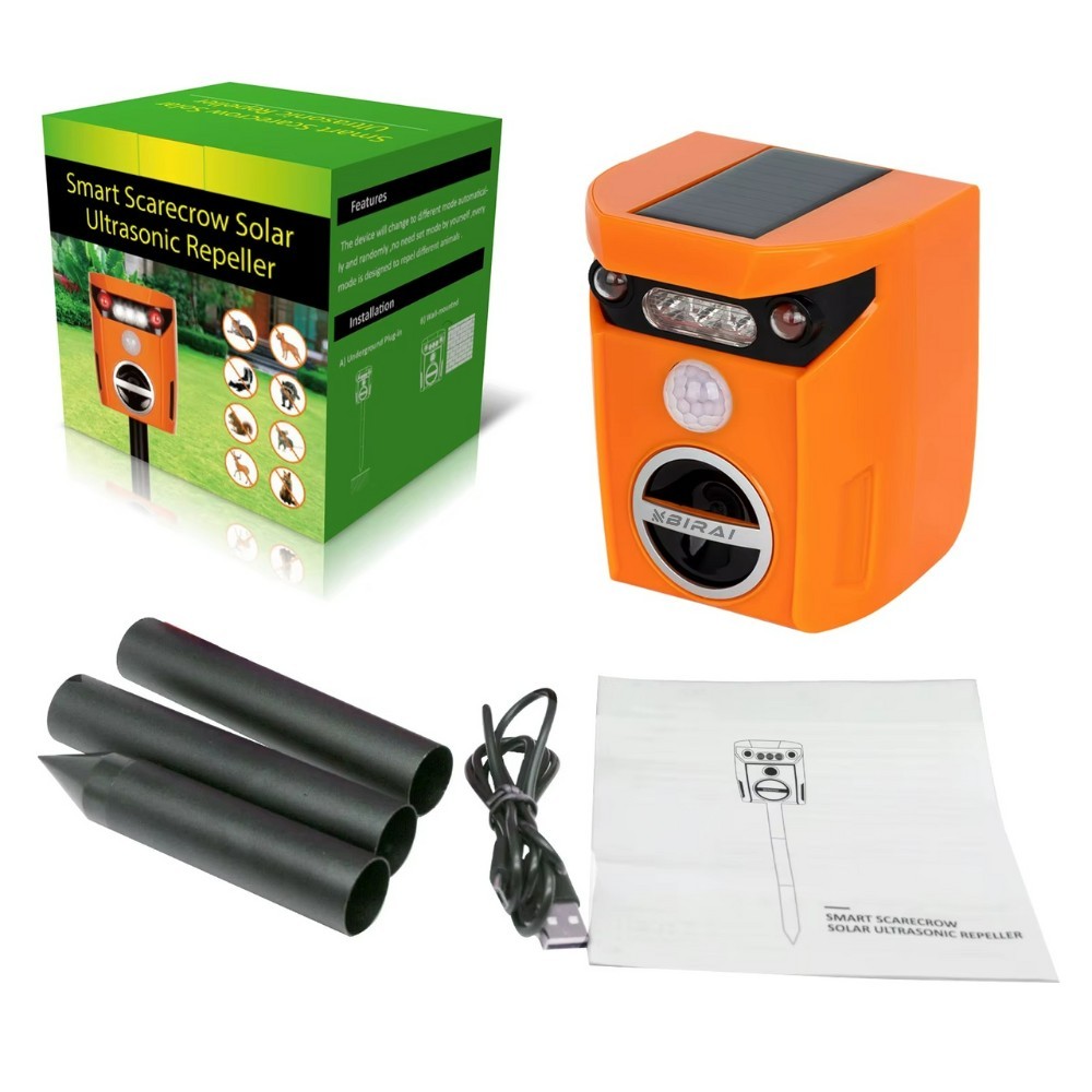 Detecteaza miscarea prin senzorul PIR integrat si emite unde ultrasonice, insotite de lumini LED intermitente, care sperie animalele fara a le provoca daune. Tehnologia sa activa ofera protectie continua, chiar si pe timpul noptii sau in lipsa utilizatorului. Este ideal pentru proprietarii care cauta o solutie eficienta, silentioasa si automata pentru controlul faunei nedorite.