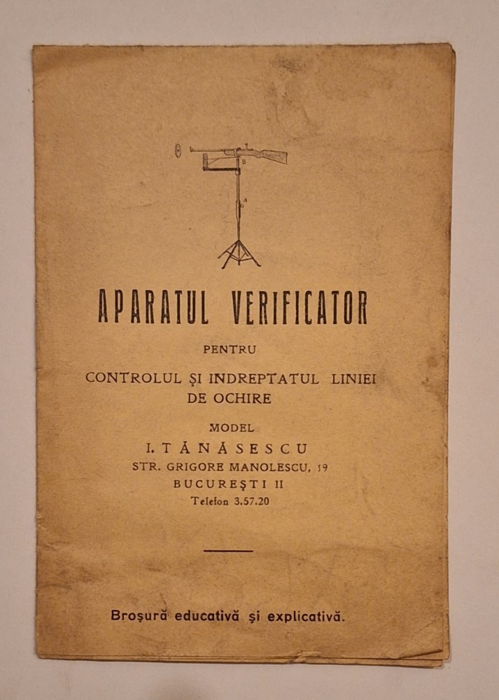 Aparatul verificator – ochire/tragere – broșură interbelică, brevet 27538/1938, I. Tănăsescu
