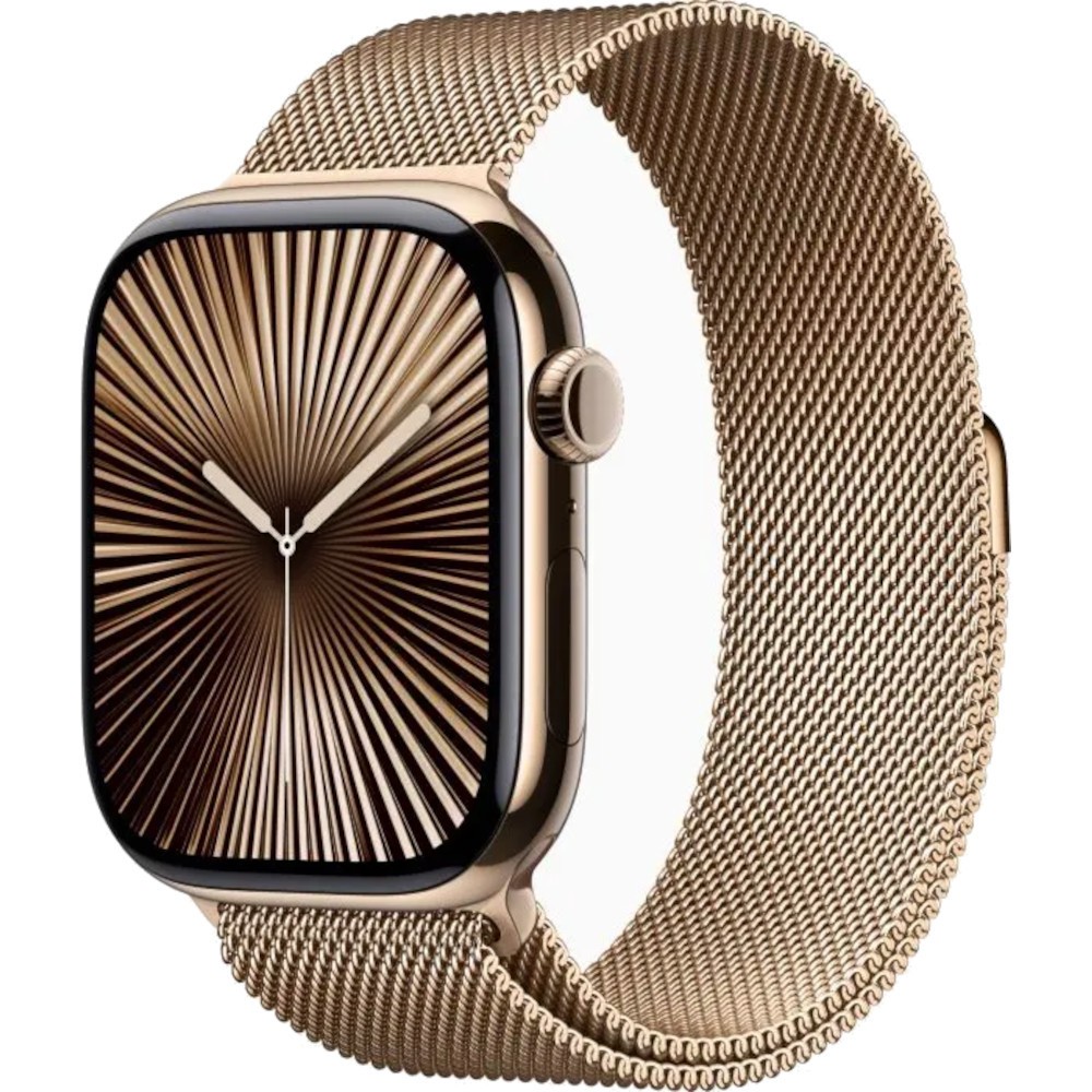 Apple Watch Seria 10, GPS + Cellular, 46 mm, Gold Titanium Case, Gold Milanese Loop, S/M