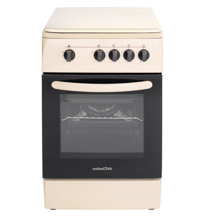 Aragaz NobelTek NLT 5601B/G1, Gaz, 4 arzatoare, Dispozitiv siguranta plita si cuptor, 50 x 60 cm, Bej