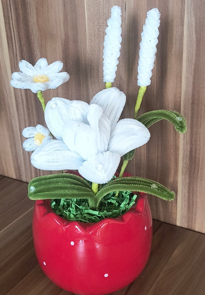 Vând aranjamente flori realizate din sârmă plușată . Anunțul este