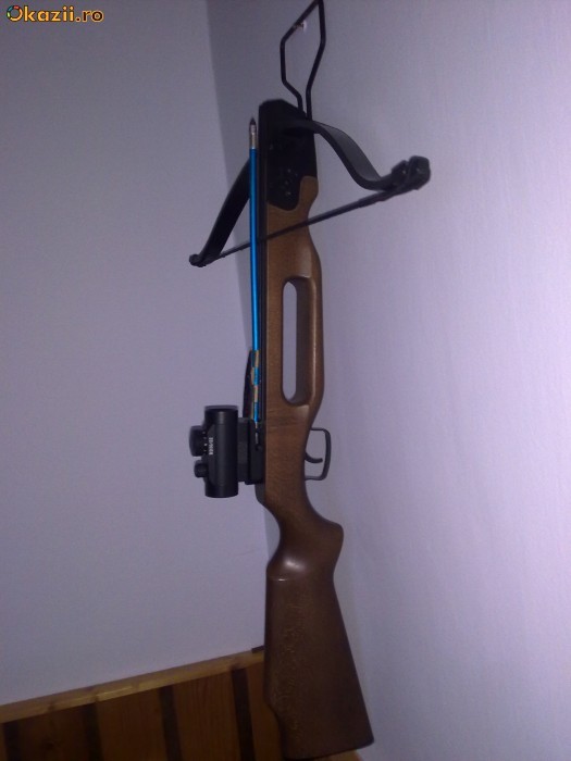 SE VINDE CU TOT CU PUNCTATORUIL LASER, REGLAT SI CALIBRAT PTR MODELUL ARBALETEI ARATAT, MARCA "GAMO RD 30/22" ACESTA AVAND 11 NIVELURI DE INTENSITATE AL LASER-ULUI. TOTODATA ARBALETA VINE SI CU SISTEMUL CONVENTIONAL DE OKIRE, CE A FOST DEMONTAT DE ARMURIER PTR A SE PERMITE MONTAREA PUNCTATORULUI LASER.